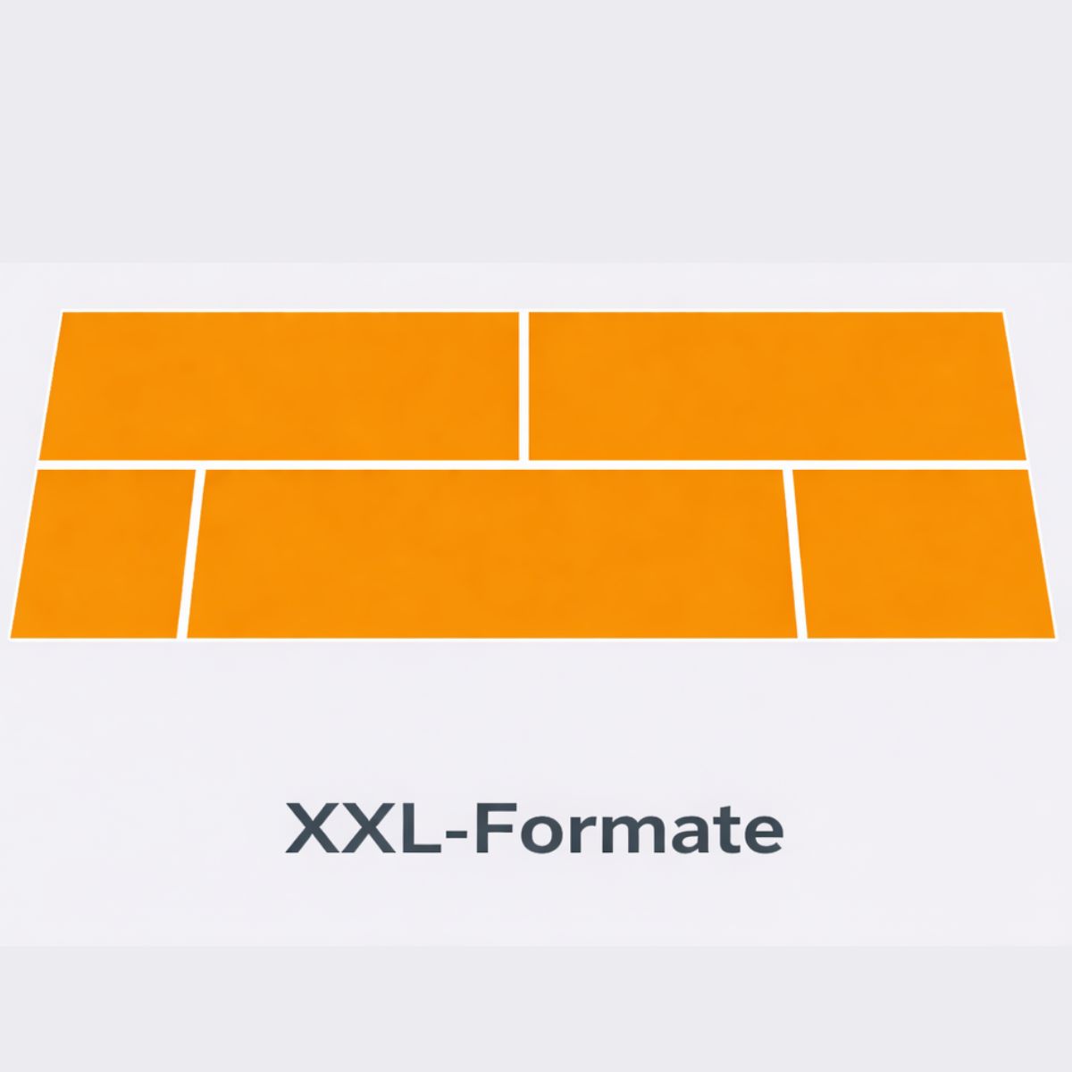 Von klassischen rechteckigen Platten über großformatige XXL-Fliesen bis hin zu Natursteindielen, Römischem Verband und maßgefertigten Sonderzuschnitten – unsere Formatauswahl unterstützt jede Art von Gestaltungsidee.